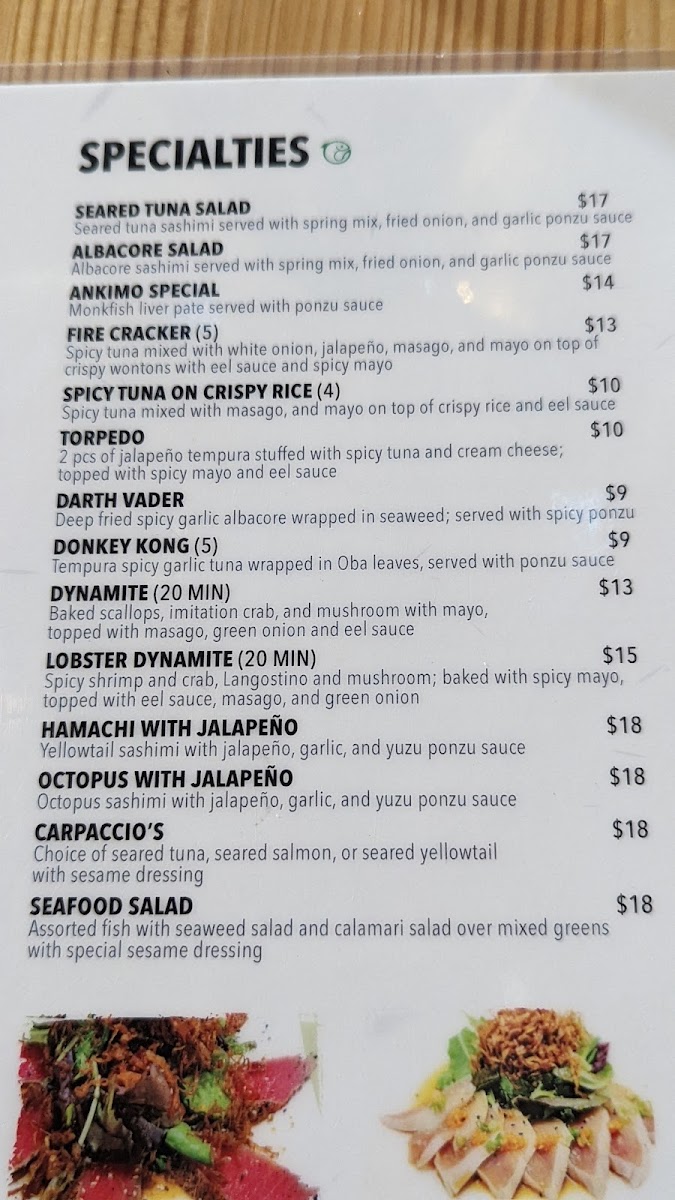 Choice of seared tuna, seared salmon, or seared yellowtail with sesame dressing