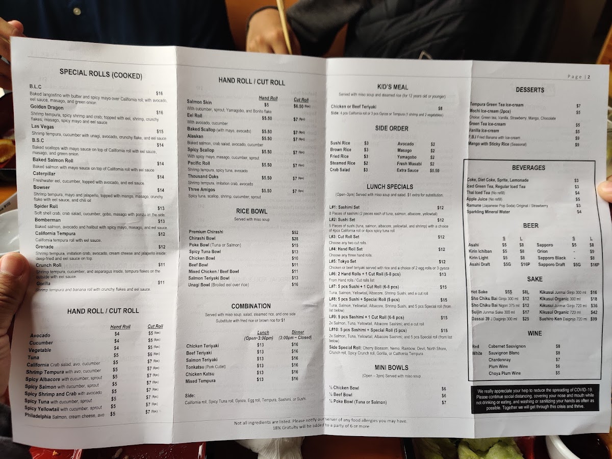 2 Hand rolls + 1 cut roll (from hand roll and cut roll list)